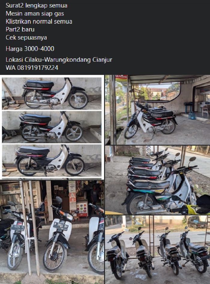 Dari unggahan fotonya, ada 4 unit Honda Astrea Grand dipajang di depan kios sederhana.