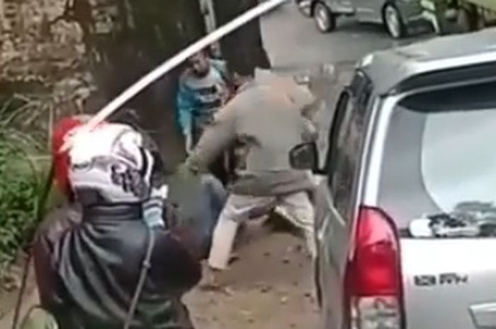 Dari keterangan perekam video, keduanya berantem karena rebutan jalan saat akan melintas.
