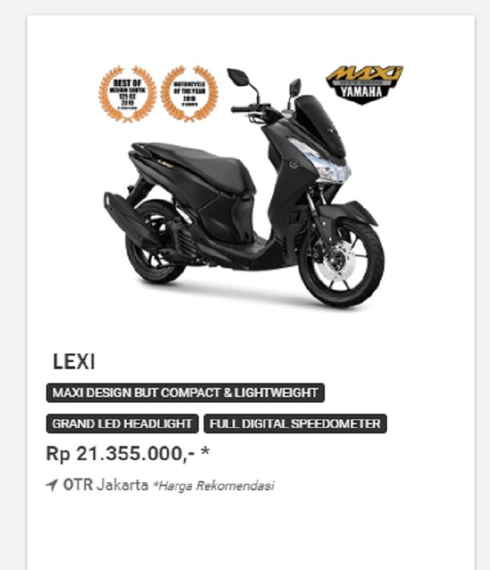 Uang segitu bisa beli dua unit Yamaha Lexi yang dijual Rp 21.335.000 (dari situs yamaha-motor.co.id).