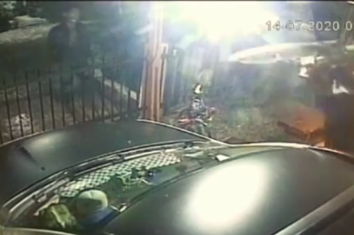 Sementara satu lagi masuk ke dalam rumah dan langsung mengambil sepeda, kemudian memberikan sepeda itu ke temannya.