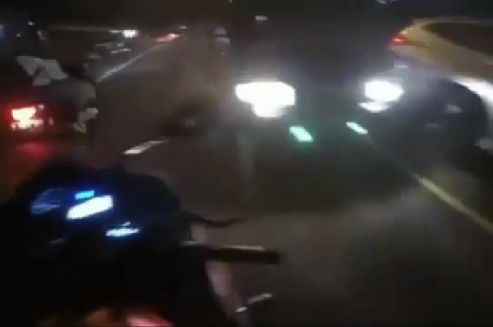 Pada video tersebut, terlihat seorang pemotor Kawasaki Ninja 250 sedang melaju di sebuah jalan raya.