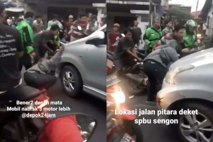 Gridmotor.id - Warga berhamburan, mobil Toyota Avanza hantam 3 motor sekaligus.