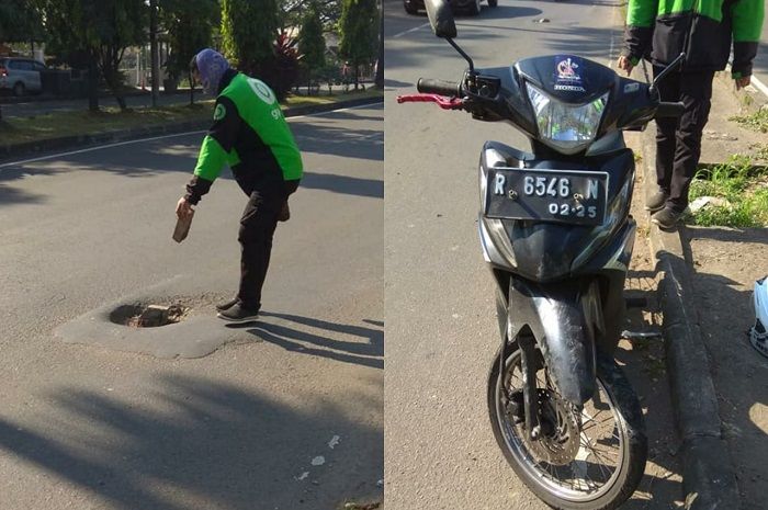 Gridmotor.id - Ngeri-ngeri sedap nih lubang di tengah jalan, bikin pemotor Honda Revo cilaka.