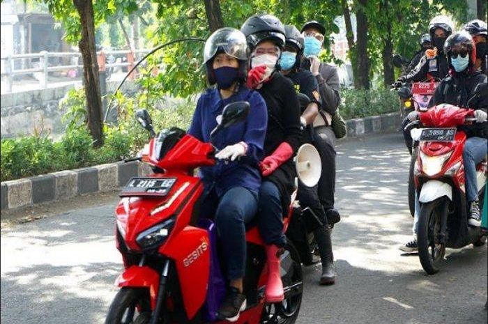 Gridmotor.id - Waduh, Wali Kota Surabaya, Tri Rismaharini atau Risma teriak-teriak sambil naik motor.