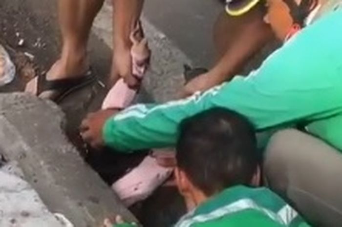 Dalam video terlihat evakuasi terlihat agak sulit akibat lubang got yang cukup sempit.