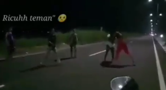 Tidak diperlihatkan proses cek cok, tapi tiba-tiba kedua pemotor malah adu jotos alias berantem.