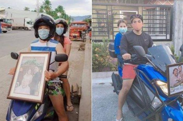 Gridmotor.id - Bikin ngiri para jomblo nih, pasutri kreatif pamer foto pernikahaan di motornya saat ada larangan berboncengan selain suami istri