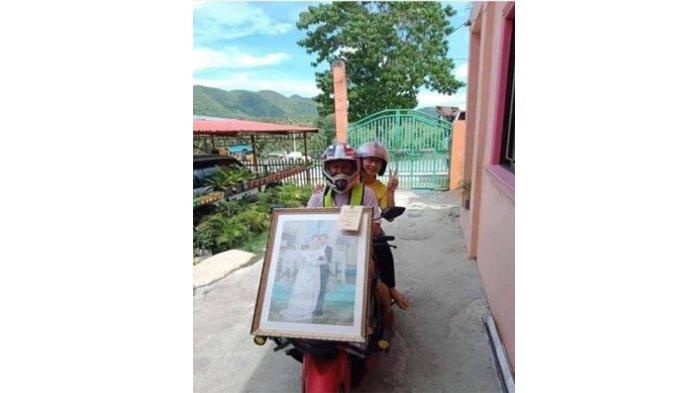 Beberapa pasangan seperti diberitakan Elite Readers terlihat memasang foto pernikahan di bagian depan sepeda motornya.