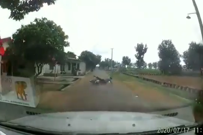 Gridmotor.id - Seorang pemotor secara mendadak terjatuh dari motornya hingga terseret di jalanan.