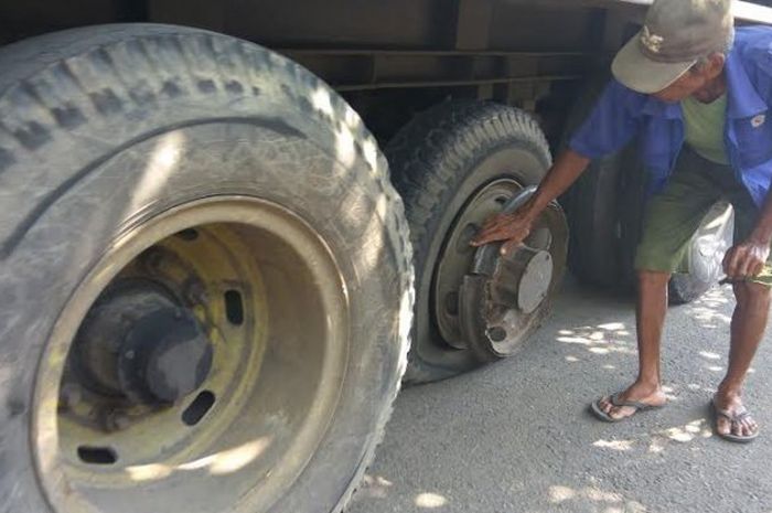Gak tanggung-tanggung seperangkat roda belakang kontainer melejit copot dan hantam benda di depannya.