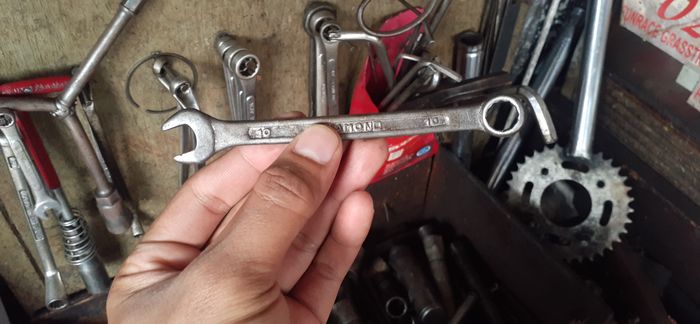"Kalo dadakan kendor atau lepas gak bawa kunci 10 sih gampang, yang pertama bisa pakai kunci busi yang biasanya nempel di bawah jok motor," buka Subkhan.