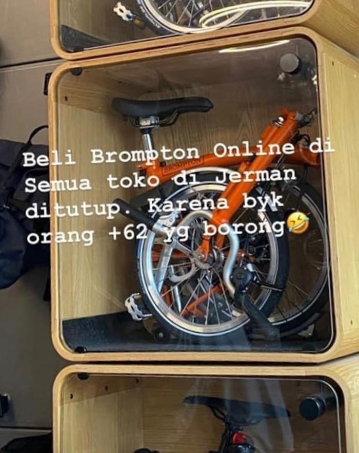 Pemilik akun membuat cuitan tentang betapa parahnya fanatikan sepeda Brompton di Indonesia.