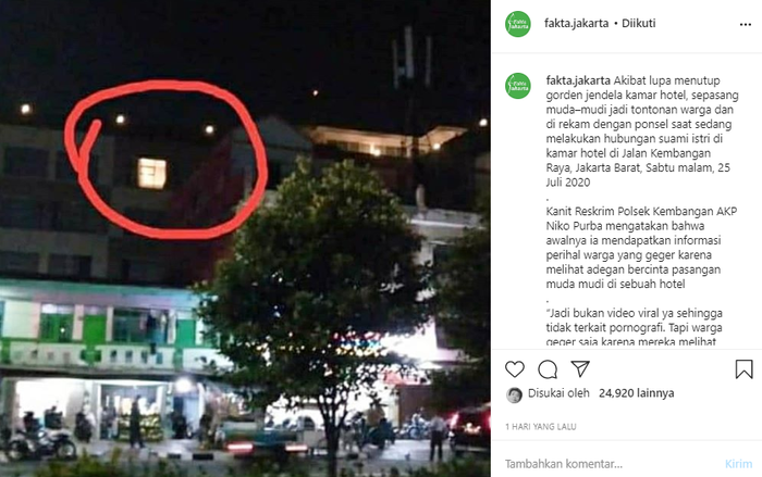 Para warga dapat melihatnya lantaran gorden hotel lupa ditutup.