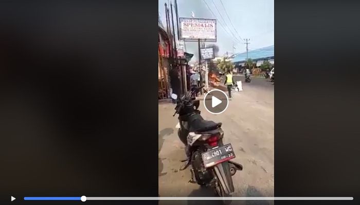 Dari video yang diambil dari kejauhan, nampak kobaran api melahap seluruh bagian motor yang enggak jelas merek dan jenisnya.