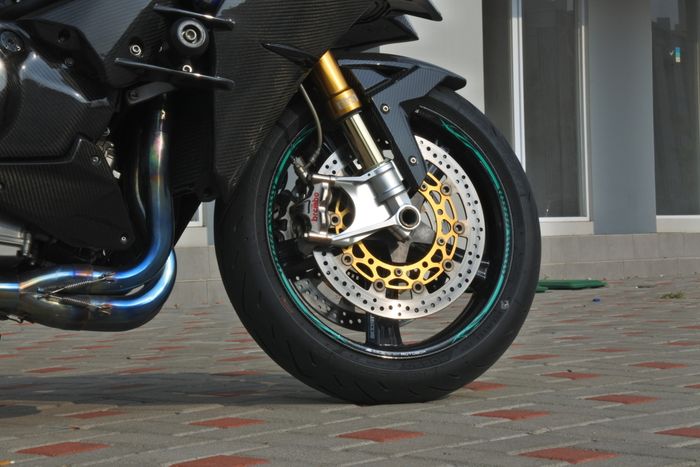 "Yang depan itu upside down Ohlins FGRT, ukuran panjangnya 740 dengan stroke 120. Jadi memang spek tinggi.