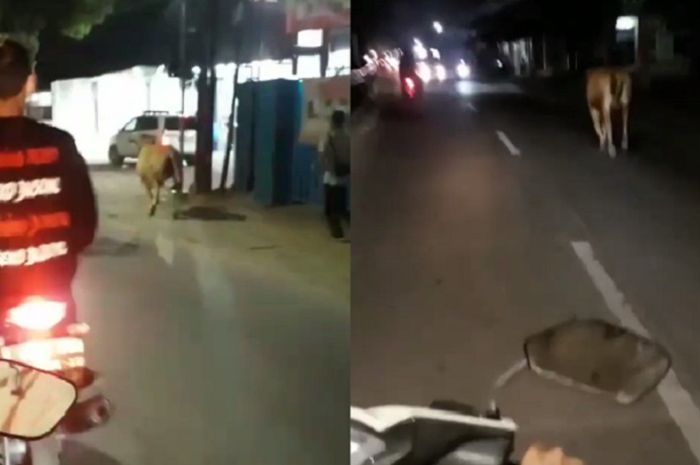 GridMotor.id - Waduh, seekor sapi lepas dan lari ke tengah jalan bikin pemotor geger.