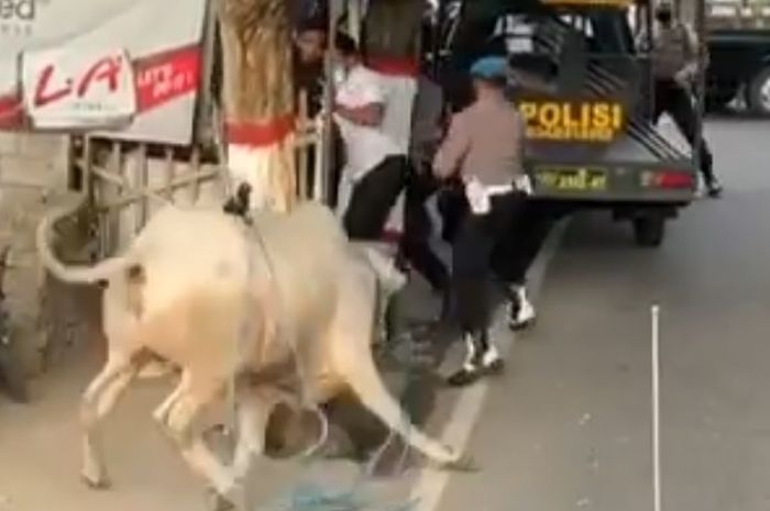 Gridmotor.id - Sapi qurban lepas membuat Polisi lari terbirit-birit dan pemotor ikut bubar, kejadian ini terekam kamera videonya jadi viral.