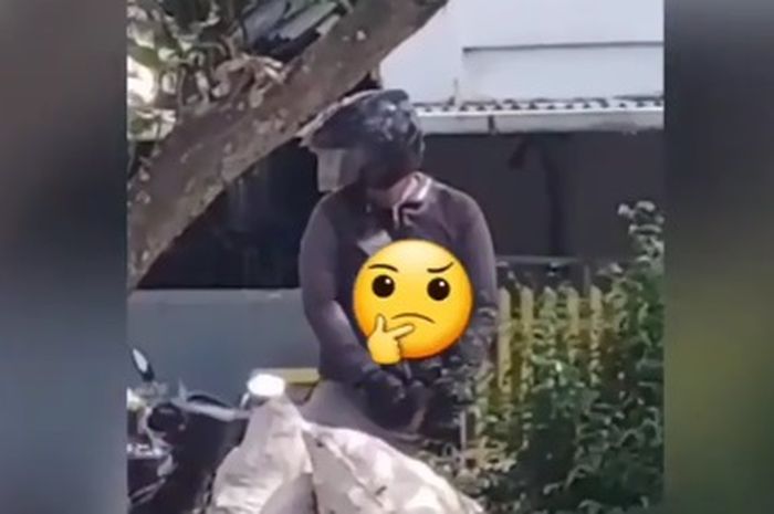 Bikin geger, banyak sekali warga yang melihat aksi pria yang tak melepas helmya ini.