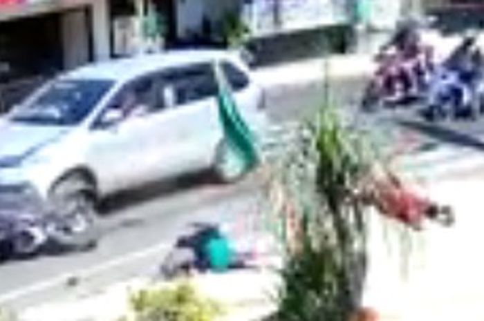 Gridmotor.id- 2 emak-emak langsung kejang-kejang dihantam mobil, naik motor belok sembarangan kena batunya.