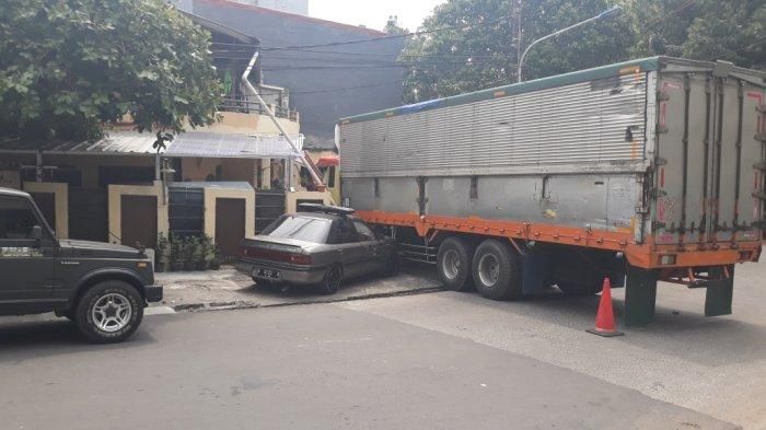 Pantauan TribunJakarta.com di lokasi, hingga Pukul 12.00 WIB, bagian depan truk tronton B 9805 OF itu masih berada di halaman rumah yang ditabraknya.