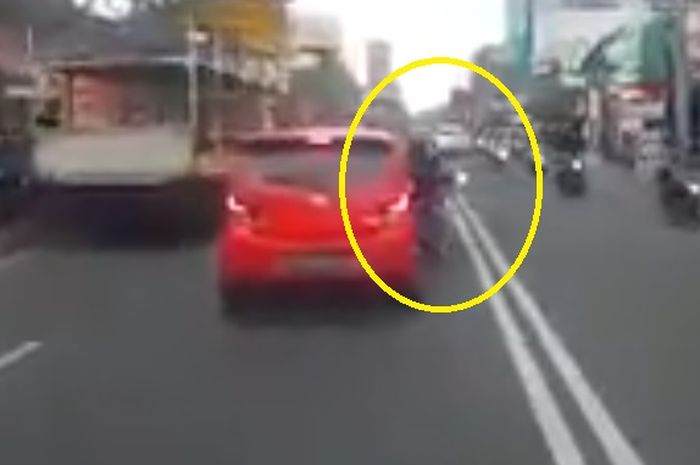 Gridmotor.id - Pemotor serempet Toyota Agya, pengendara langsung ambruk gara-gara belok asal nyelonong.