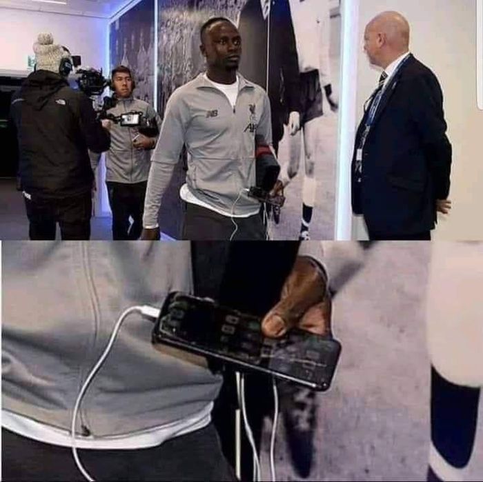 Bahkan ada satu fotonya yang viral di media sosial karena terlihat Mane memegang handphone yang layarnya sudah retak layarnya.