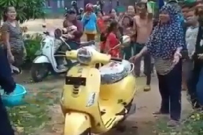 Gridmotor.id- Satu kampung bahagia, Vespa matic baru dibeli langsung disambut kaya raja, cuman di Indonesia pokoknya.