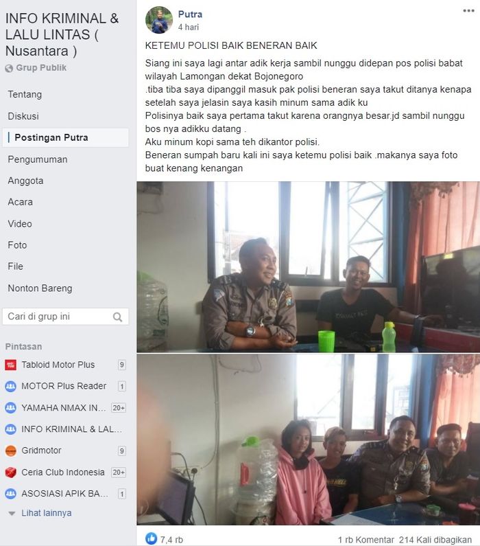 Grup ini sering mengekpos polisi nakal dan begitu ada polisi baik sepertinya para anggotanya dapat surprise.