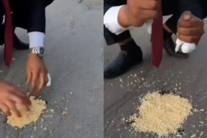 Gridmotor.id - Insinyur pasti nangis liat video ini tambal jalan berlubang pakai mie instan.