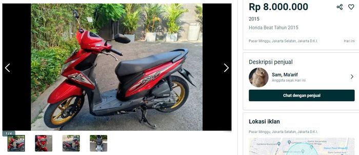 Dikutip GridMotor dari situs jual beli olx, Honda BeAT warna merah tahun 2015 bisa ditebus uang Rp 8 juta.
