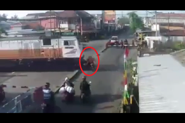 GridMotor.id - Asli serem banget video detik-detik pemotor tersambar kereta beredar di media sosial.