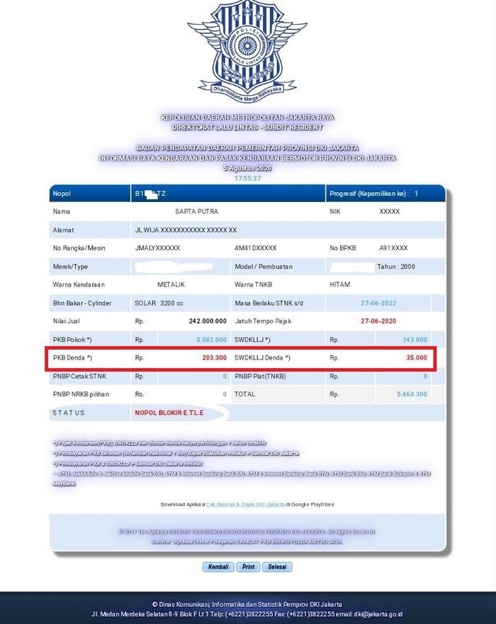 Jadi ketika akan pelakukan pembayaran pajak kendaraan akan ketahuan besar PKB dan dendanya.
