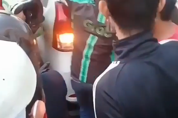 Pada video itu terlihat puluhan orang tengah mengepung satu unit mobil berwarna putih.