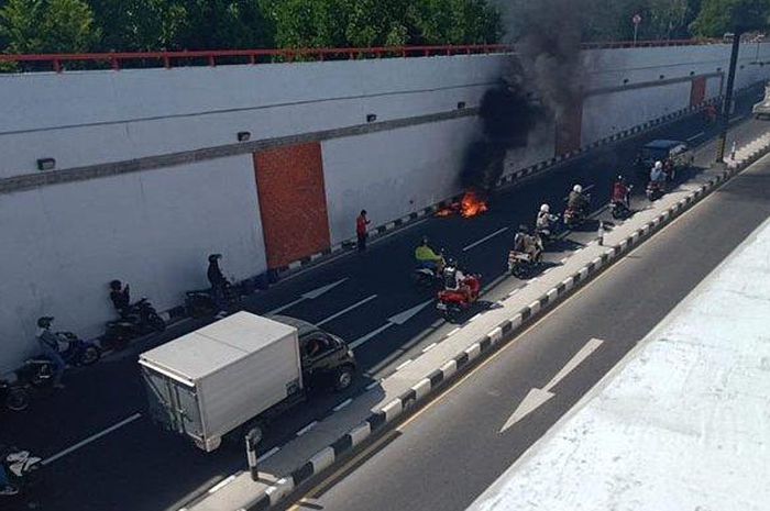Peristiwa motor terbakar ini terjadi di terowongan Jalan Underpass Simpang Tugu Ngurah Rai, Kuta, Badung, Bali pada hari Senin (24/8/2020) pukul 10.30 wita kemarin.