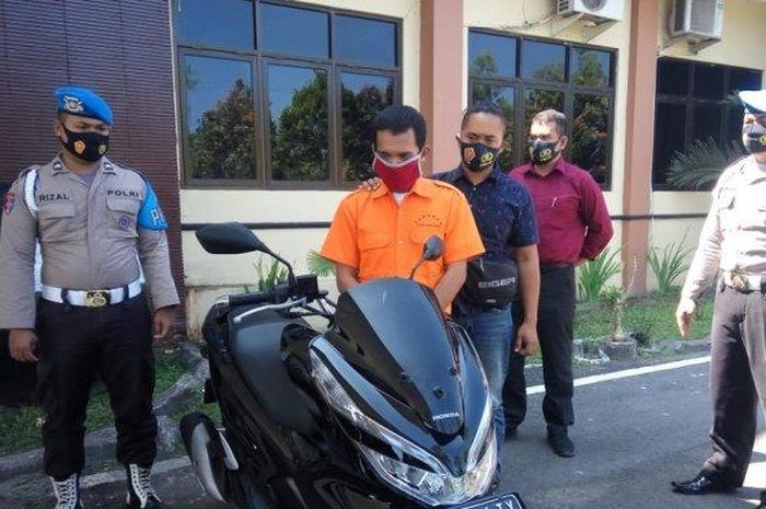 AP menggelapkan sepeda motor matic jenis Honda PCX bernopol AB 5504 TX.