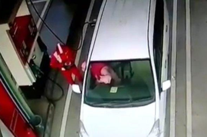 Pegawai SPBU tersebut merasa dirugikan oleh pengendara perempuan seusai mengisi bahan bakar.