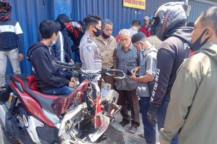 Melansir dari Tribunmadura.com, Honda ADV warna merah keluaran 2020, bernopol N 2674 HHJ rusak parah bagian depannya.