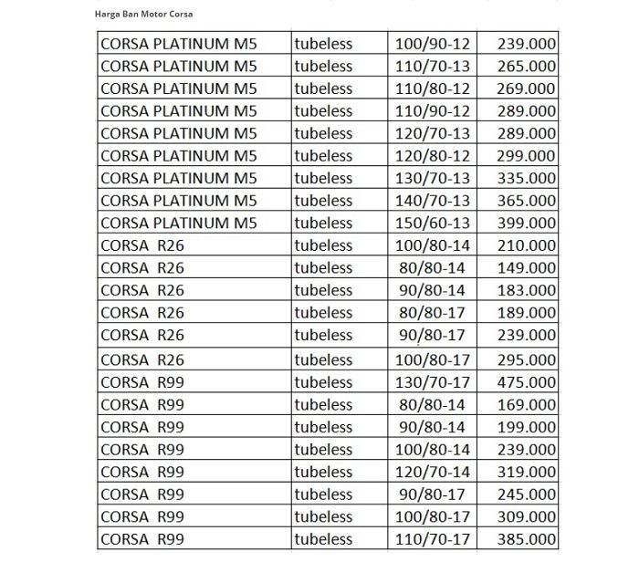 Yuk intip daftar harga ban motor di bawah ini diambil dari price list Planet Ban: