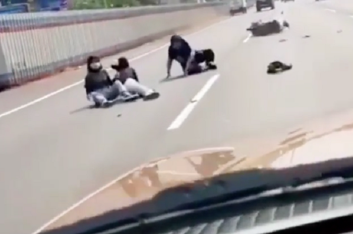 GridMotor.id - Viral pemotor ambyar jatuh di Jalan Tol Jakarta-Cikampek, ditilang dengan pasal berlapis bro.