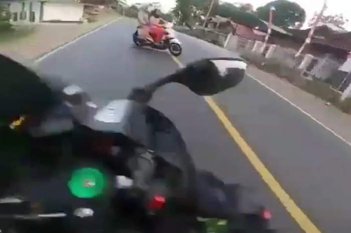 Gridmotor.id - Jantung berasa mau copot lihatnya, video detik-detik Kawasaki Ninja ZX-10R hampir tabrak emak-emak pemotor.