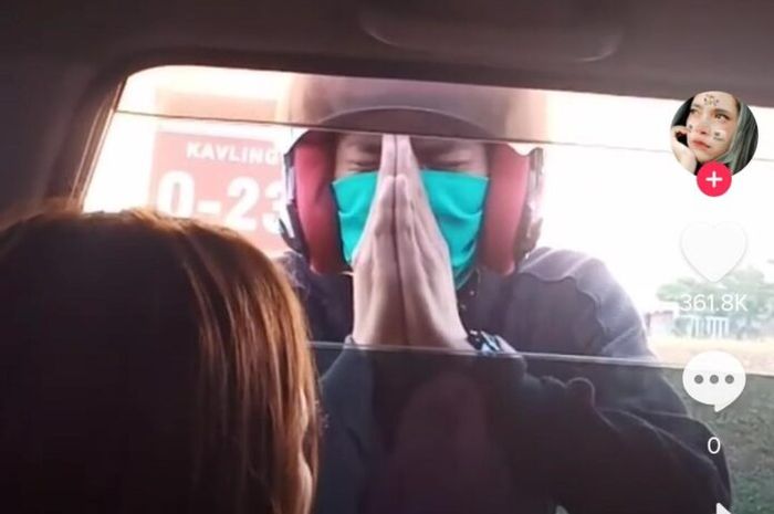 MOTOR Plus-Online.com - Viral video seorang pria berhelm menangis dan memohon ke seorang gadis.