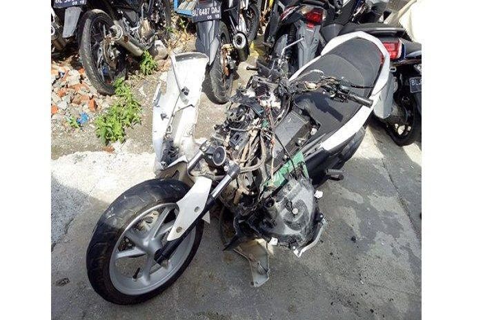 Seluruh panel bodi depan pecah termasuk lampu yang membuat kelistrikan teburai.