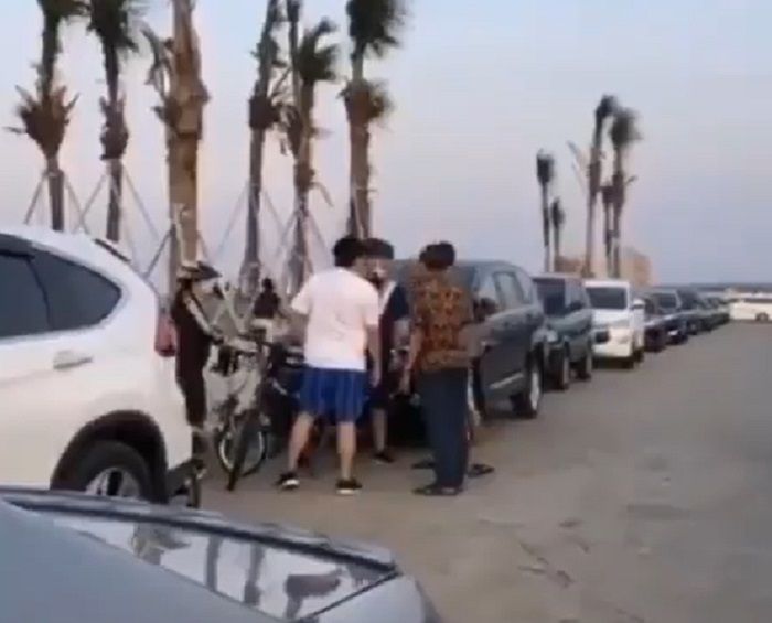 Beberapa warga dan pesepeda di sekitar lokasi enggak berani melerai karena takut dengan ancaman lelaki berambut cepak itu.