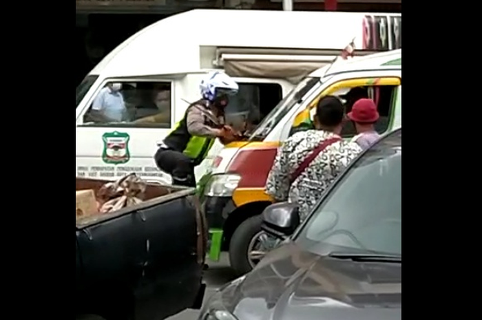 Gridmotor.id - Akibat tidak kuat menahan emosi supir angkot nekat tabrak polisi hingga terseret 5 meter.