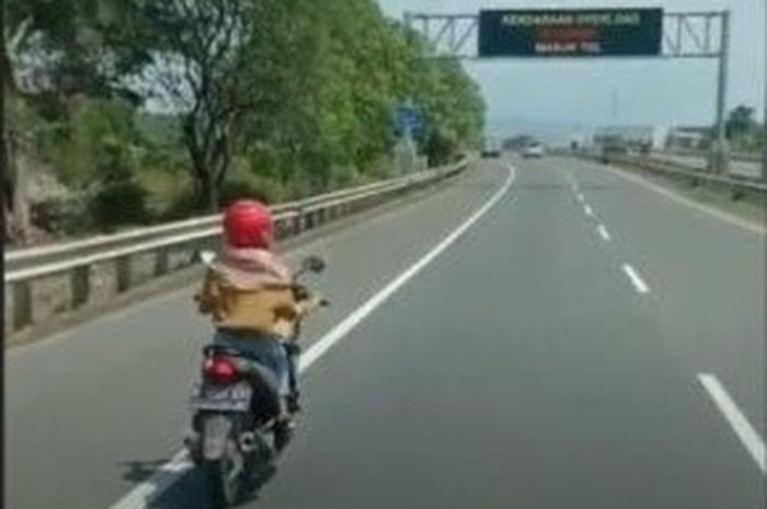 Gridmotor.id - Seorang ibu mengendarai motor matik masuk tol di Semarang jadi viral di media sosial.
