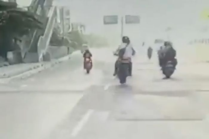 Dalam video yang viral setelah diunggah akun @dramaojol tersebut, terlihat seorang pengendara sepeda motor melaju dengan kecepatan sedang.