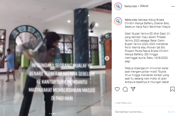 Video detik-detik kecelakaan dan kenangan saat Almarhum membersihkan masjid juga diunggah di media sosial Instagram @fakta.indo.