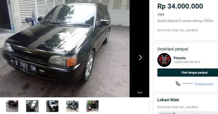 Walaupun usianya sudah enggak muda lagi, namun Toyota Starlet yang ditawarkan seseorang bernama Priyanto ini masih terbilang mulus.