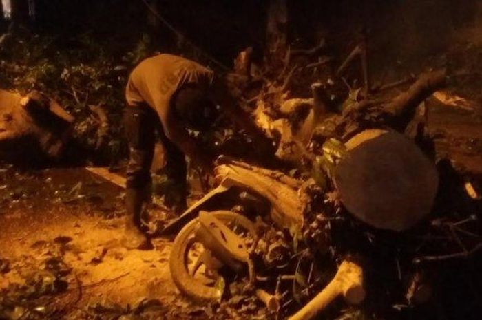Tidak ada korban jiwa saat pohon setinggi 10 meter tumbang menimpa motor.