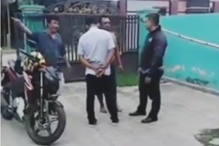Lima pria yang mengaku debt collector itu menunjukkan surat penarikan motor yang di dalamnya terdapat logo perusahaan leasing.